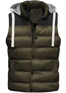 Bezrękawnik męski zielony z szarym kapturem Recea
