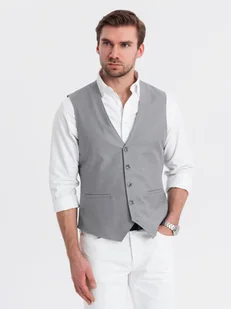 Dopasowana męska kamizelka z rayonem i marmurkowymi guzikami szara V3 OM-BLZV-0112 S
