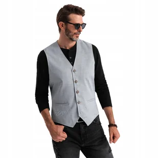 Garniturowa żakardowa męska kamizelka bez klap jasnoszara V1 OM-BLZV-0106 L