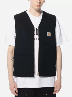 Carhartt WIP Arbor Vest "Black" bezrękawnik dla mężczyzn Carhartt WIP Arbor Vest "Black" to męska kamizelka, która łączy w sobie funkcjonalność i styl. Model ten jest wyposażony w zamek błyskawiczny, co ułatwia szybkie zakładanie i zdejmowanie. Trzy kieszenie z przodu, w tym jedna z charakterystyczną kwadratową metką Carhartt WIP, oferują praktyczne miejsce do przechowywania drobnych przedmiotów. Potrójne szwy dodają trwałości i wytrzymałości. Carhartt WIP Arbor Vest "Black" to nie tylko stylowy element męskiej garderoby, ale także praktyczna warstwa ubioru, idealna do noszenia na różne okazje. Zobacz pozostałe kurtki męskie marki Carhartt WIP w ofercie naszego sklepu Kolory czarny Materiał płótno Dearborn, 100% bawełna Klasyczny krój Model zapinany na suwak Trzy kieszenie na froncie, z czego jedna z kwadratową metką Carhartt WIP Potrójne szwy