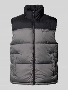 Kamizelka pikowana męska REVIEW;Prosty krój;Stójka;Wyhaftowane logo;Zamek błyskawiczny;Wpuszczane kieszenie;Długość tyłu w rozmiarze M: 65 cm;Szerokość ramion w rozmiarze M: 45 cm;Szerokość klatki piersiowej w rozmiarze M: 40 cm