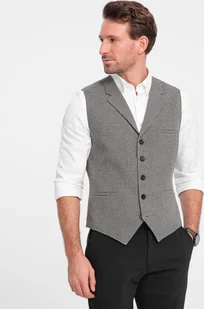 Ombre Żakardowa kamizelka męska z klapami - grafitowa V1 OM-BLZV-0122 XL