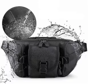 Taktyczna torba typu nerka, którą można nosić tradycyjnie w pasie (biodrówka). Świetnie nadaje się do przenoszenia różnych niewielkich przedmiotów, które potrzebujemy mieć pod ręką. Jedna, pojemna komora główna oraz trzy mniejsze kieszenie - wszystkie zamykane na zamek. W pełni wodoodporny materiał (800D oxford) Długość paska: regulowana Wymiary: