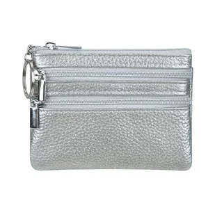Damska saszetka na monety, z prawdziwej skóry, miniaturowy portfel z brelokiem na drobne, Srebrny, One Size, Portmonetka