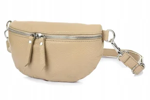 Damska Skórzana Włoska Saszetka Nerka na pasek biodrówka regulowana pojemna Damska, solidna, skórzana saszetka, nerka na biodro z doczepianym paskiem! Nerki produkowane są we Włoszech z miłej w dotyku i pięknie pachnącej skóry naturalnej! Pasek w zestawie również jest skórzany! Usztywniana saszetka zawsze trzyma swój fason! Biodrówka od wewnątrz wyłożona jest solidną podszewką. Prezentowana jest nerka w kolorze beżowym. Najważniejsze parametry techniczne tego ekskluzywnego produktu: Materiał: 1- Skóra naturalna Wielkość: Mała, nie mieszcząca A4 Kolor okuć: