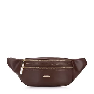 Męska torebka nerka z ekoskóry z błyszczącym suwakiem z przodu beżowa