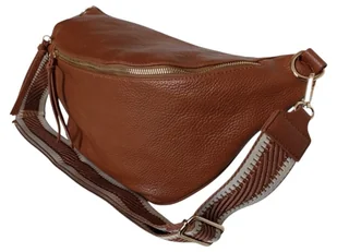 Duża Nerka Damska na Ramię, Saszetka - Brązowa Torebka na Szerokim Pasku