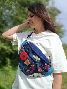 Bardzo duża nerka torebka damska z łączonych materiałów. Kultowy gadżet przydatny w czasie wszelkich wycieczek, koncertów i festiwali. Oryginalne połączenie kolorów, materiałów i faktur przyciąga wzrok. Ze wz ...