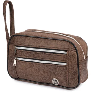 Kosmetyczna Podróżna Saszetka Elegancka Uniseks Koniakowa Konianubuk Beltimore R25 : Kolory - Brązowy, Beżowy
