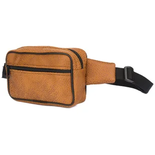 Camel saszetka nerka damska 3 suwaki Beltimore skóra naturalna F23 brązowy, beżowy