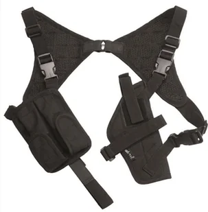 Mil-Tec Kabura z Szelkami Praktyczna kabura na ramię wykonana z wytrzymałego nylonu, wyposażona w kieszeń na dwa magazynki. Przeznaczona do pionowego noszeni...