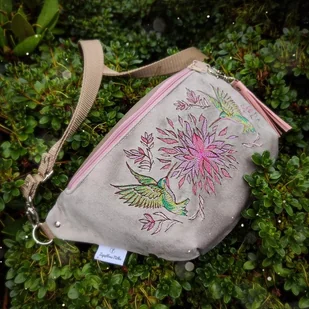 FRĘDZELEK DO DOKUPIENIA OSOBNO W SKLEPIE. - nerka uszyta z aksamitu w odcieniu beżowo szarym (przód nerki), eko skóry dobranej pod kolor przodu (tył i klapa nerki) oraz bawełno lnu (podszewka) - tył nerki ...
