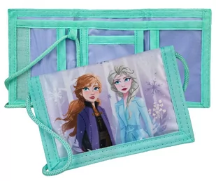 Portfel "Kraina Lodu" w kolorze turkusowo-fioletowym - 9,5 x 13,5 x 12,5 cm - materiał: poliester - zapięcie: suwak - kieszonka na monety: osobna, na zamek - ze szlufką
