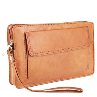 Skórzana saszetka męska z paskiem na nadgarstek produkt odszyty z najwyższą dbałością z mocnej i bardzo trwałej skóry naturalnej bydlęcej jej brązowy, klasyc...