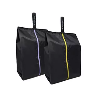 EcoRight torby na buty w 100% z recyklingu, wodoodporne, duże etui na buty z zamkiem błyskawicznym, dla mężczyzn i kobiet, 8 plastikowych butelek, zestaw 2 szt, Czarny z żółtym i fioletowym zamkiem
