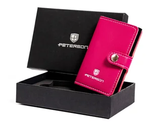Peterson Etui Skórzane Ptn Es-Pink Skórzane etui z podajnikiem na karty i wizytówki — Peterson Portfel polskiej marki PETERSON® wykonany z eleganckiej, gładk...