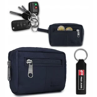 Małe ETUI SKÓRZANE Na Klucze Monety Karty Na Suwak GRANATOWE Pako Jeans