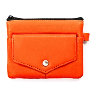 Pomarańczowe etui na klucze ze skóry naturalnej kieszonki na suwak i zatrzask etui na karty gotówkę