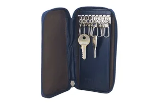Wnętrze etui: skórzane etui na klucze jest wykończone podszewką. Wewnątrz znajduje się osiem zaczepów na klucze. Dodatkowo, pod doszytym skórzanym elementem znajduje się schowek na kartę płatniczą lub dowód osobisty. Skórzane etui mieści klucze do samochodu lub mieszkania, jest zasuwane i wysyłane w ozdobnym pudełku. Skorzystaj z naszej oferty, zapoznaj się z kolekcją portfeli damskich lub męskich ze skóry naturalnej.