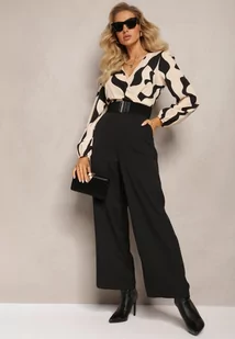Beżowy Kombinezon z Kopertowym Dekoltem i Paskiem Freselam