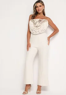 Beżowy Kombinezon bez Rękawów z Dużą Kwiatową Aplikacją i Kieszeniami Talemia