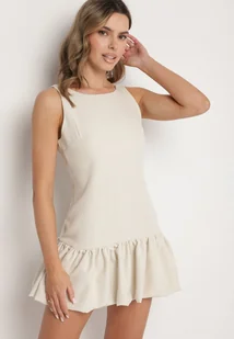 Beżowy Taliowany Kombinezon z Falbanką Novenira