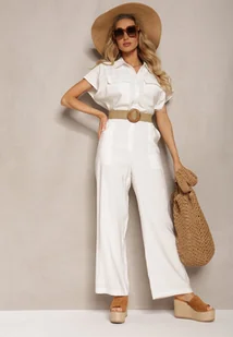 Biały Kombinezon Utility z Paskiem Plecionym z Okrągłą Klamrą Vesalia