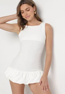 Biały Taliowany Kombinezon Ozdobiony Falbanką Semiriela