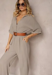 Ciemnobeżowy Bawełniany Kombinezon z Koszulową Górą i Prostymi Spodniami Namsore