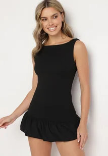 Czarny Taliowany Kombinezon Ozdobiony Falbanką Semiriela