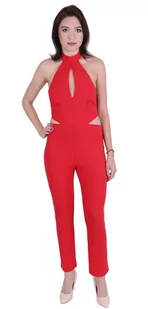 Czerwony, kobiecy kombinezon z wycięciami John Zack