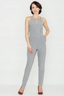 Elegancki KOMBINEZON z rozcięciem na dekolcie BEZ RĘKAWÓW szary S