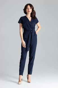 Granatowy Elegancki Kombinezon z Kopertowym Dekoltem