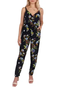 Granatowy kombinezon w kwiaty, ramiączka John Zack M