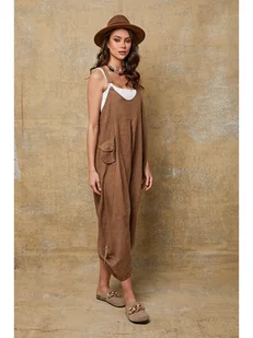 Joséfine Lniane ogrodniczki "Bridget" w kolorze jasnobrązowym