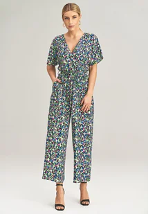 Kimonowy kombinezon z wiązaniem kolorowe kwiaty M1022 rozmiar S/M