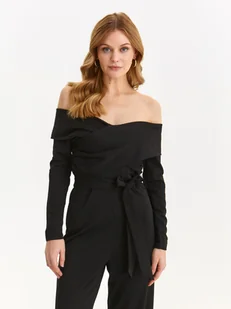 Kombinezon damski Top Secret z efektownie odkrytymi ramionami. Elegancki kombinezon damski o luźnym stylu z prostymi długimi oraz szerokimi nogawkami. Posiada on proste długie rękawy oraz odsłonięte ramiona, ujmując swą miękkością i delikatnością, a uroku dodaje mu praktyczne wiązanie w talii z wykorzystaniem paska z tego samego materiału oraz efektowne przeploty z przodu na wysokości biustu. Wykonany on został z dobrej gatunkowo oraz przyjemnej w dotyku dzianiny, będąc świetnym uzupełnieniem praktycznie każdej kobiecej stylizacji wyjściowej i imprezowej. Kombinezon dostępny w kolorze czarnym SKB2800CA.