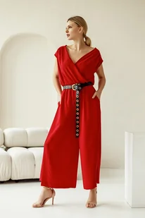 Kombinezon o nazwie GOLDEN EYE Projekt i wykonanie DOMINIKA MŁYŃCZAK kolor CZERWONY Krwisty, przepiękny, prawdziwy czerwony Delikatna, lejąca, całoroczna, elegancka tkanina Zakładana, kopertowa, bardz ...