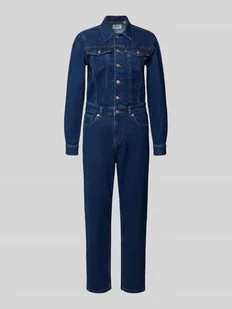 Kombinezon damski Pepe Jeans;Model ‘Vala’;Efekt: jednolity kolor;Krój: taliowany;Aplikacja: Naszywka z logo, aplikacja z logo;Detale: Karczek, szlufki na pasek;Kształt kołnierza: