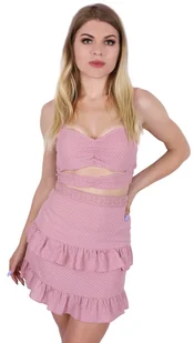 Różowa spódniczka z falbankami w kropki + krótki top na ramiączkach Parisian XS