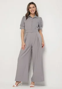 Szary Taliowany Kombinezon z Ozdobną Klamrą Filateia