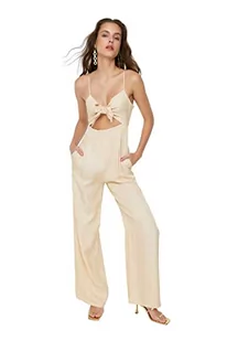 Trendyol Kombinezon damski, jednokolorowy, tkany kombinezon, Ecru, 10