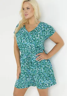 Zielony Kombinezon w Kwiatki z Gumką w Pasie i Krótkimi Nogawkami Obeda
