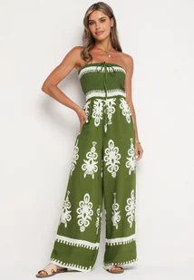 Zielony Wiskozowy Kombinezon Bez Rękawów z Geometrycznym Wzorem Orceria