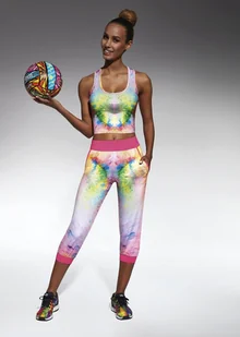 Damskie spodnie dresowe 3/4, całkowicie kryjące. Skład i technologie: 85% poliester, 15% elastan oddychający materiał certyfikat Oeko-Tex Standard 107