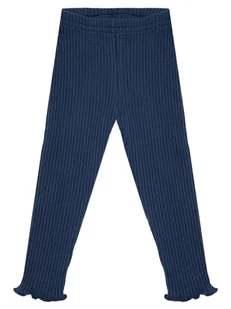 Prążkowane legginsy dla dziewczynki uszyte z elastycznej i miłej w dotyku bawełny z dodatkiem elastanu w kolorze granatowym. Materiał z jakiego zostały wykon...