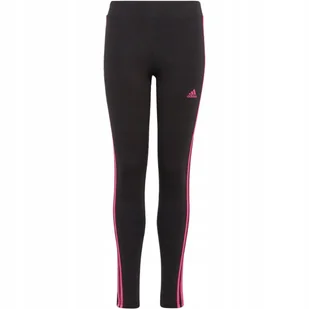 Legginsy dla dzieci adidas Essentials 3-Stripes Cotton Tights czarno-różowe Legginsy dla dzieci adidas Essentials 3-Stripes Cotton Tights czarno-różowe IC362...