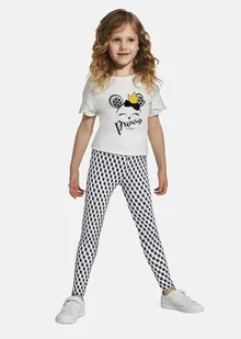 Legginsy dziewczęce DORA elastyczne z ozdobnym printem, Bas Bleu