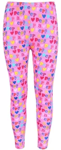 Dziewczęce legginsy w kolorze różowym. Ozdobione powtarzającym się, różnokolorowym napisem "Peppa" i serduszkami. Legginsy są wykonane z dobrej jakości, elas...