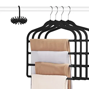 Tinfol Aksamitny wieszak na spodnie, oszczędzający miejsce, 4-pak, czarne, niesrebrne aksamitne wieszaki, wielowarstwowe, ultracienkie wieszaki na spodnie, szafa, wielofunkcyjny stojak na spodnie, szaliki, dżinsy, legginsy